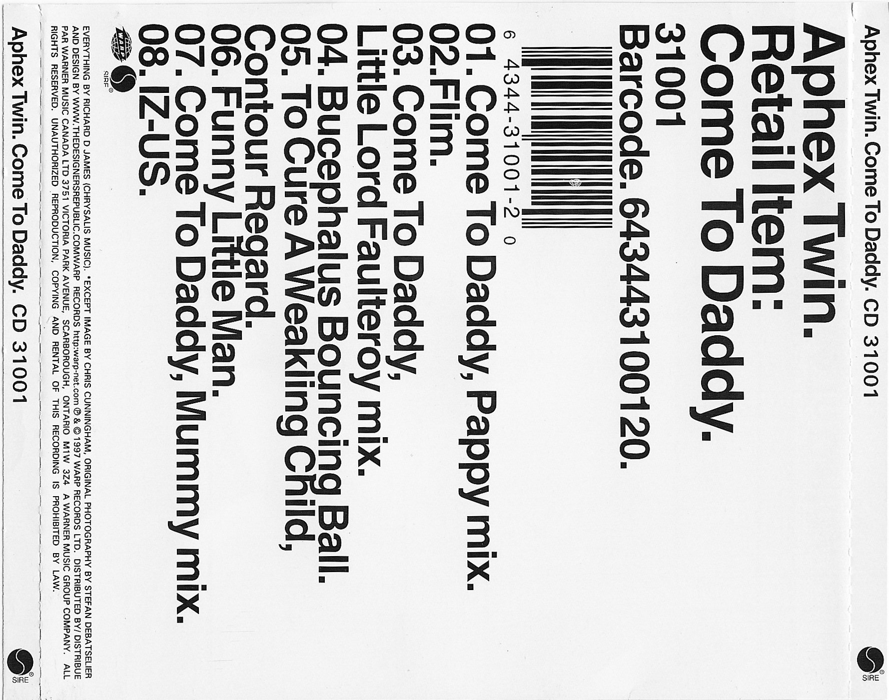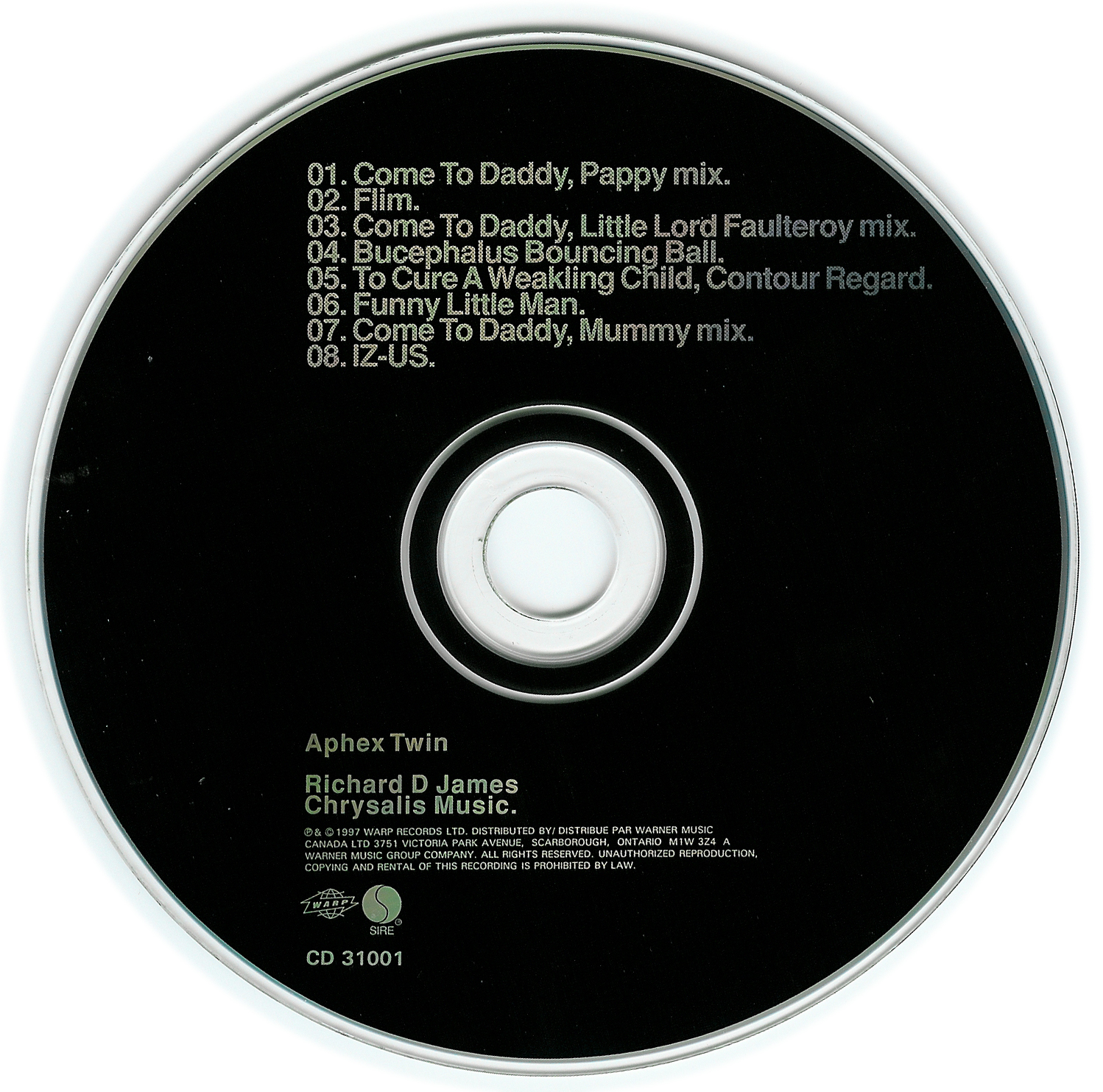 | - | 01 - Aphex Twin - Come To Daddy (Pappy Mix).mp3 | 9129166 | | Come To Daddy | 1 | Aphex Twin | Come To Daddy (Pappy Mix) | 1997 | 261.533333 | 279 | 279 | | mp3 | mp3 | | mp3 | 2013-04-22 01:25:58 |